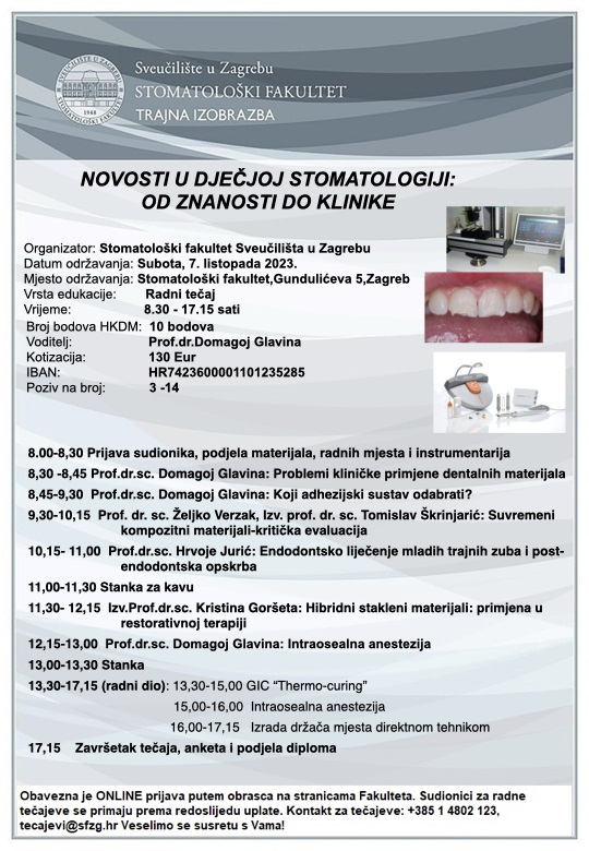 Hrvatski dani dječje stomatologije 2023 održat će se 01.12. do 02.12.2023
